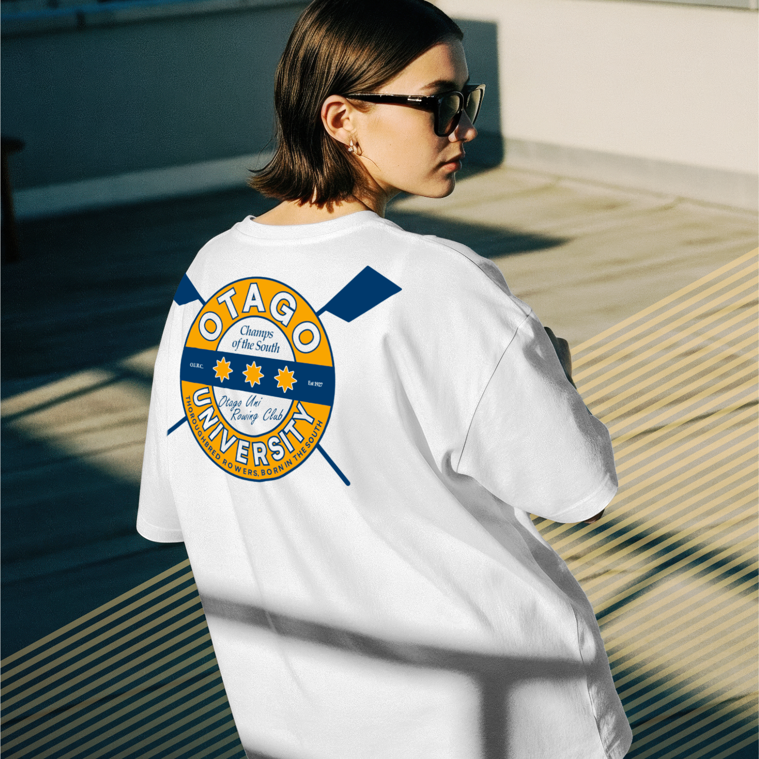 A custom printed design for Otago University Rowers and supporters.